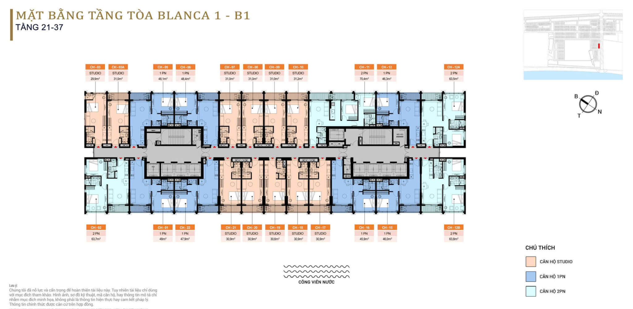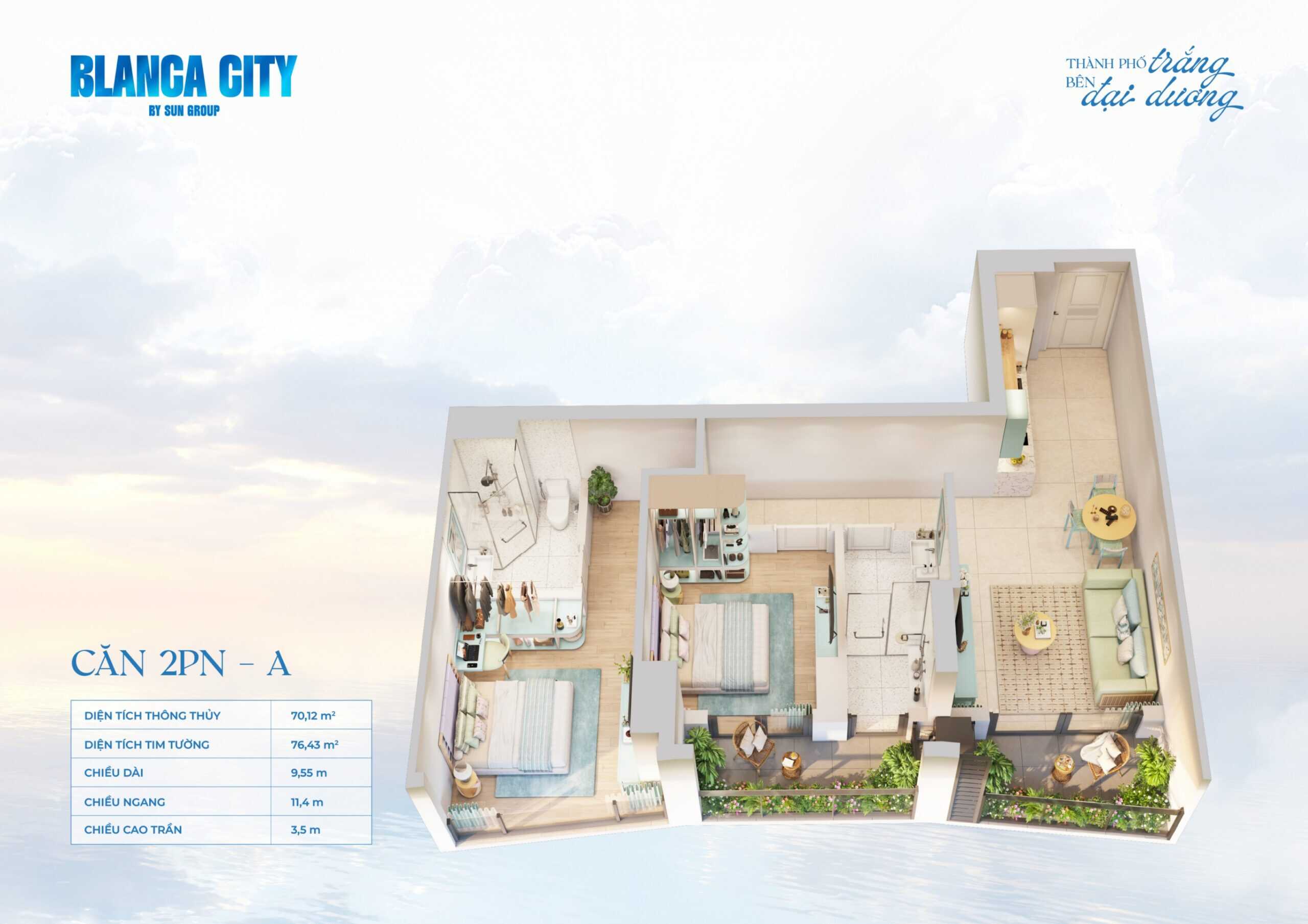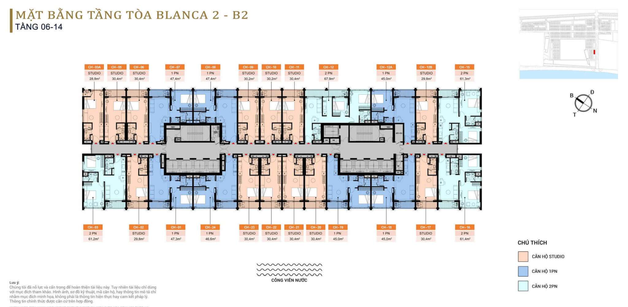 Căn hộ Blanca gồm 6 tháp cao 34–40 tầng, cung cấp tổng cộng 4.448 căn hộ với diện tích đa dạng từ 30,6 m² đến 68,6 m², phù hợp nhiều nhu cầu. Tất cả căn hộ đều được bàn giao full nội thất cao cấp, sẵn sàng dọn vào ở. Các block được đánh mã khoa học (B1–B7, trừ B4) và mở bán theo từng đợt (Nhịp 1, 2, 3) để đảm bảo minh bạch và thuận tiện cho khách hàng.
