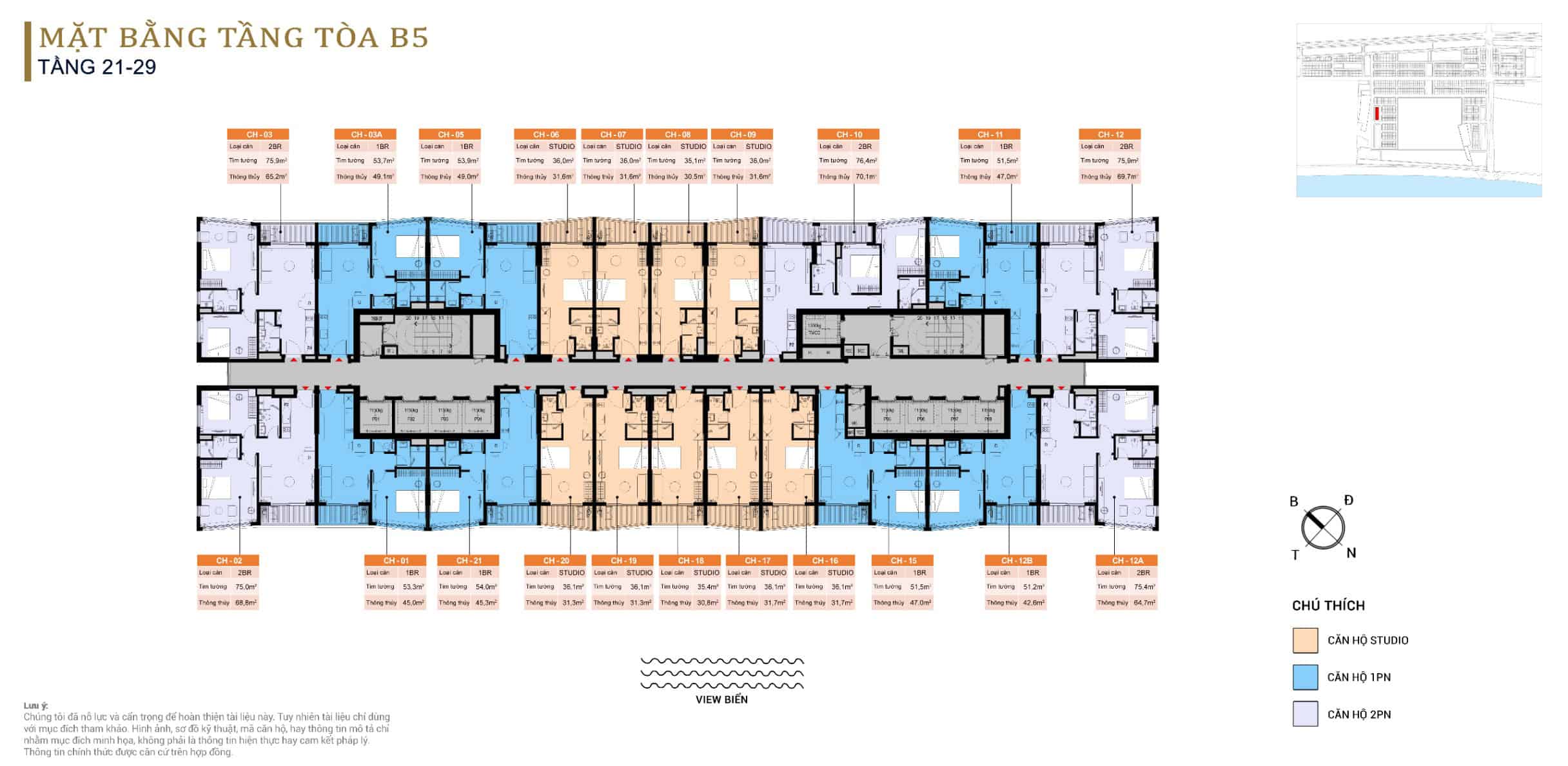 Chọn mặt gửi vàng ra mắt đầu tiên là các tòa tháp gần biển nhất dự án với 100% căn hộ view biển cùng tiêu chuẩn bàn giao full nội thất (không bao gồm đồ điện tử, riêng căn hộ Duplex bàn giao thô). Tiêu chuẩn này phù hợp cho mục tiêu kép đầu tư và nghỉ dưỡng. Từng căn hộ là một “chuyến hải trình sống” được chăm chút tỉ mỉ: từ studio trẻ trung, căn hộ 1 phòng ngủ tiện nghi, 2 phòng ngủ thích hợp cho gia đình, đến duplex hai tầng sang trọng – tất cả đều có logia riêng và tầm nhìn đắt giá. Từ những “du thuyền trên không”, cư dân có thể đón trọn nắng vàng lấp lánh cùng sắc xanh đại dương, hoặc ngắm nhìn trọn vẹn Sun World Vũng Tàu – công viên nước đa năng quy mô 15ha đậm chất nhiệt đới ban ngày và rực rỡ ánh sáng, sôi động buổi tối