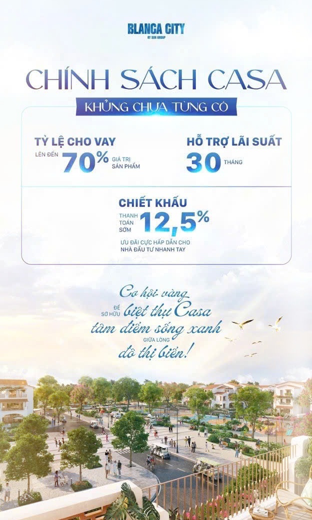 Biệt thự Casa là dòng sản phẩm thấp tầng cao cấp tại Blanca City, được kiến tạo như một bản giao hưởng kiến trúc độc đáo. Với hơn 200 mẫu thiết kế riêng biệt, mỗi căn biệt thự và nhà phố đều mang dấu ấn cá nhân, khẳng định đẳng cấp sống khác biệt, mang đến đa dạng lựa chọn, đáp ứng nhu cầu ở và đầu tư cao cấp: